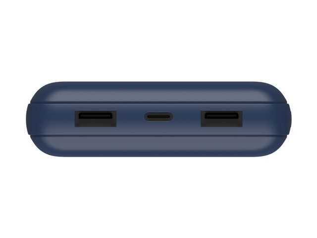 20000 mAh - 15 Watt - 3 connecteurs de sortie (USB, 24 pin USB-C) - sur le câble : USB-C - bleu