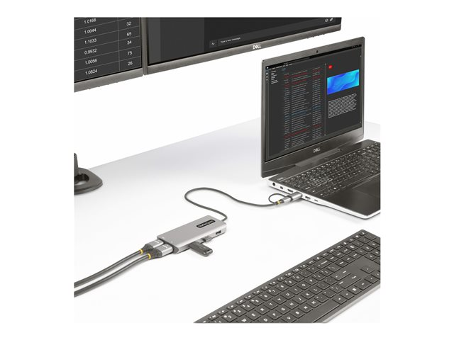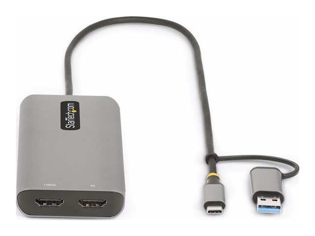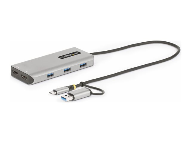 StarTech.com USB-C Multiport Adapter w/Attached USB-C to USB-A Dongle, Dual HDMI (4K30Hz/1080p60Hz), 3x USB-A, Mini Laptop Docking Station, Travel Dock, 1.3ft/40cm Cable