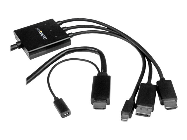 Convertisseur HDMI, DP, Mini DP vers HDMI - Noir - Adaptateur vidéo - HDMI, DisplayPort, Mini DisplayPort mâle pour HDMI, Micro-USB de type B (alimentation uniquement) - 2 m - noir - support 4K