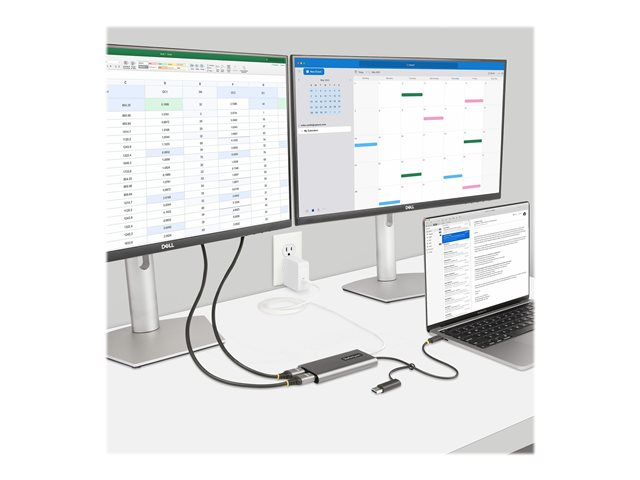 Connectez deux écrans HDMI 4K 60Hz au port USB Type-C ou Type-A d'un ordinateur portable/de bureau, à l'aide de cet adaptateur USB-C vers Dual-HDMI.