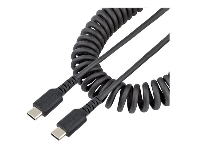 Adaptateur USB-C vers USB-C Enroulé à Usage Intesif - Câble TB3 en Fibre Aramide Robuste - Cordon USB-C à USB-C M/M - Noir (R2CCC-1M-USB-CABLE) - Câble USB - 24 pin USB-C (M) pour 24 pin USB-C (M) - USB 2.0 - 3 A - 1 m - bobiné - noir