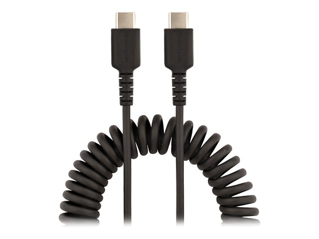 Adaptateur USB-C vers USB-C Enroulé à Usage Intesif - Câble TB3 en Fibre Aramide Robuste - Cordon USB-C à USB-C M/M - Noir (R2CCC-50C-USB-CABLE) - Câble USB - 24 pin USB-C (M) pour 24 pin USB-C (M) - USB 2.0 - 3 A - 50 cm - bobiné - noir