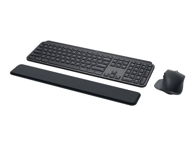 Ensemble clavier sans fil MX Keys, souris sans fil Master 3S et repose-poignets.