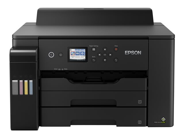 Outre le faible coût par page, cette imprimante EcoTank monofonction réalise facilement les travaux au format A3+. Les travaux A3+ peuvent être réalisés rapidement grâce aux vitesses d'impression élevées, aux deux bacs papier à chargement frontal de 250 feuilles et au chargeur de papier arrière de 50 feuilles. Imprimez selon vos préférences grâce à l'impression mobile, à la connexion Ethernet et à un écran couleur LCD de 6,1 cm doté de touches fixes.