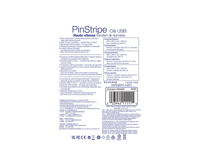 La clé USB Store 'n' Go PinStripe de Verbatim est rétractable, ce qui protège la connexion USB lorsqu'elle n'est pas utilisée, sans nécessiter de capuchon qui se perd facilement.