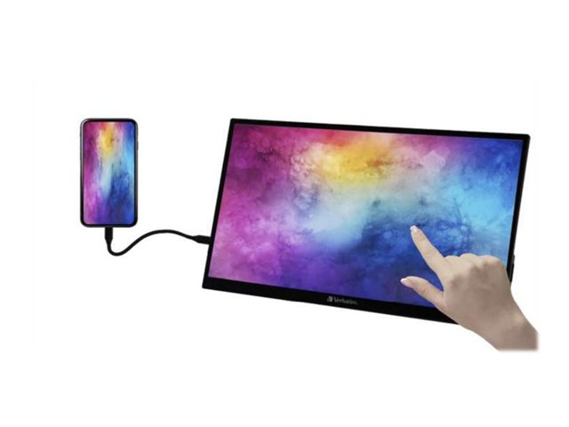 Description du produit Verbatim PMT-17 - écran LED - Full HD (1080p) - 17.3" Type de périphérique Écran LCD à rétroéclairage LED - 17.3" - écran tactile Classe énergétique Classe A Consommation électrique en mode marche 13 Watt Type de panneau IPS Facteur de forme 16:9 Résolution native Full HD (1080p) 1920 x 1080 Rapport de contraste 1000:1 Prise en charge des couleurs 16,7 millions de couleurs Connecteurs d'entrée HDMI, 2xUSB-C Tension CA 110-240 V (50/60 Hz) Normes de conformité Plug and Play -