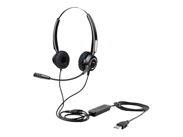 Casque supra auriculaire USB. Il se connecte très facilement à votre notebook à l'aide de sa connexion USB-A "Plug & Play". Les coussinets d'oreille vous donneront une isolation phonique naturel pour bien rester concentré sur votre activité. Le micro ajustable vous permettra de toujours bien vous faire entendre et sa télécommande intégrée vous permettra de garder le contrôle de toutes vos conversations.