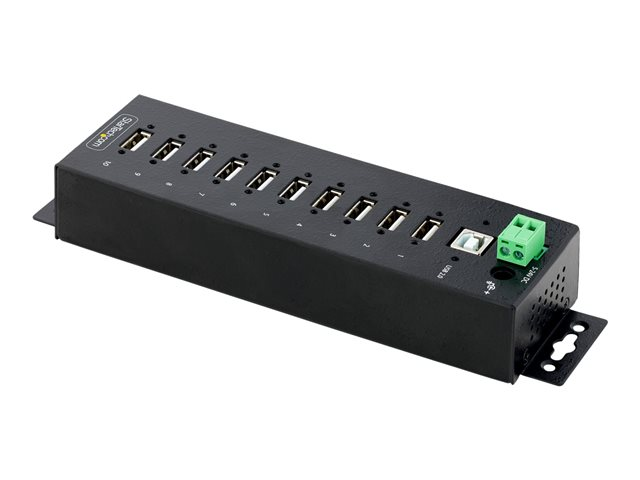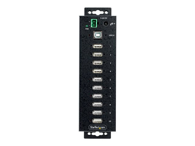 StarTech.com 10-Port Industrial USB 2.0 Hub, Rugged USB Hub w/15kV Air/8kV Contact ESD Level 4 Protection, DIN/Wall/Desk Mountable USB-A Hub, Multiport USB Hub with Locking Ports