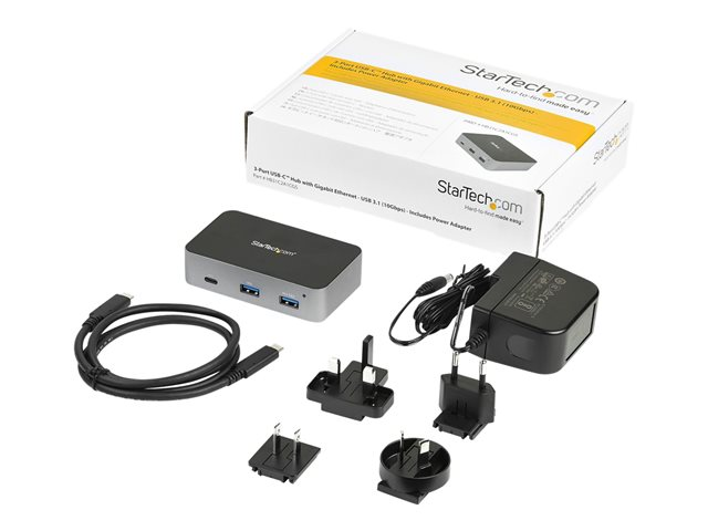 10 Gbps - Avec 2 ports USB-A, 1 port USB-C, 1 port GbE - Câble hôte avec longueur de 1 m (HB31C2A1CGS) - Concentrateur (hub) - 1 x USB-C + 2 x USB 3.1 + 1 x 10/100/1000 - de bureau - CA 110/240 V - pour P/N: PEXUSB321C