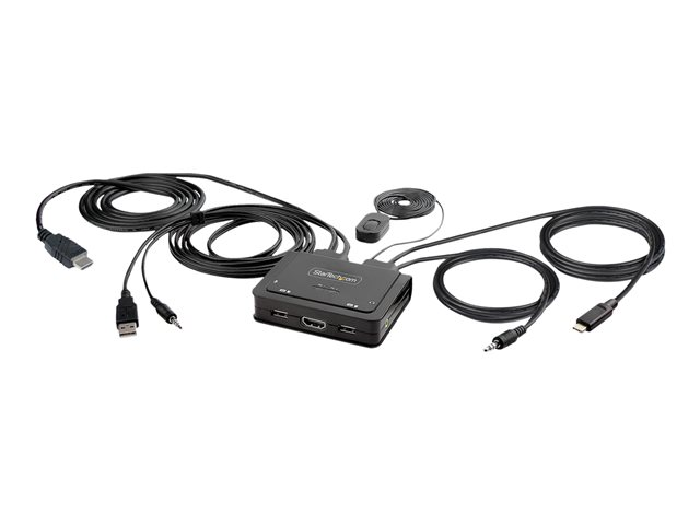 StarTech.com 2-Port Hybrid USB-C HDMI Cable KVM Switch, 4K 60Hz, Compact KVM with 6ft/1.8m USB-A/HDMI/Audio & 4ft/1.2m USB-C Integrated Host Cables, Bus Powered