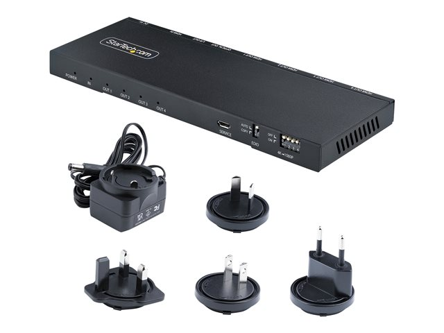 StarTech.com 4-Port HDMI Splitter, 4K 60Hz HDMI 2.0 Video, 1 In 4 Out HDMI Splitter, 4K HDMI Splitter w/Built-in Scaler, 3.5mm/Optical Audio Port, Durable Metal Housing, HDR/HDCP